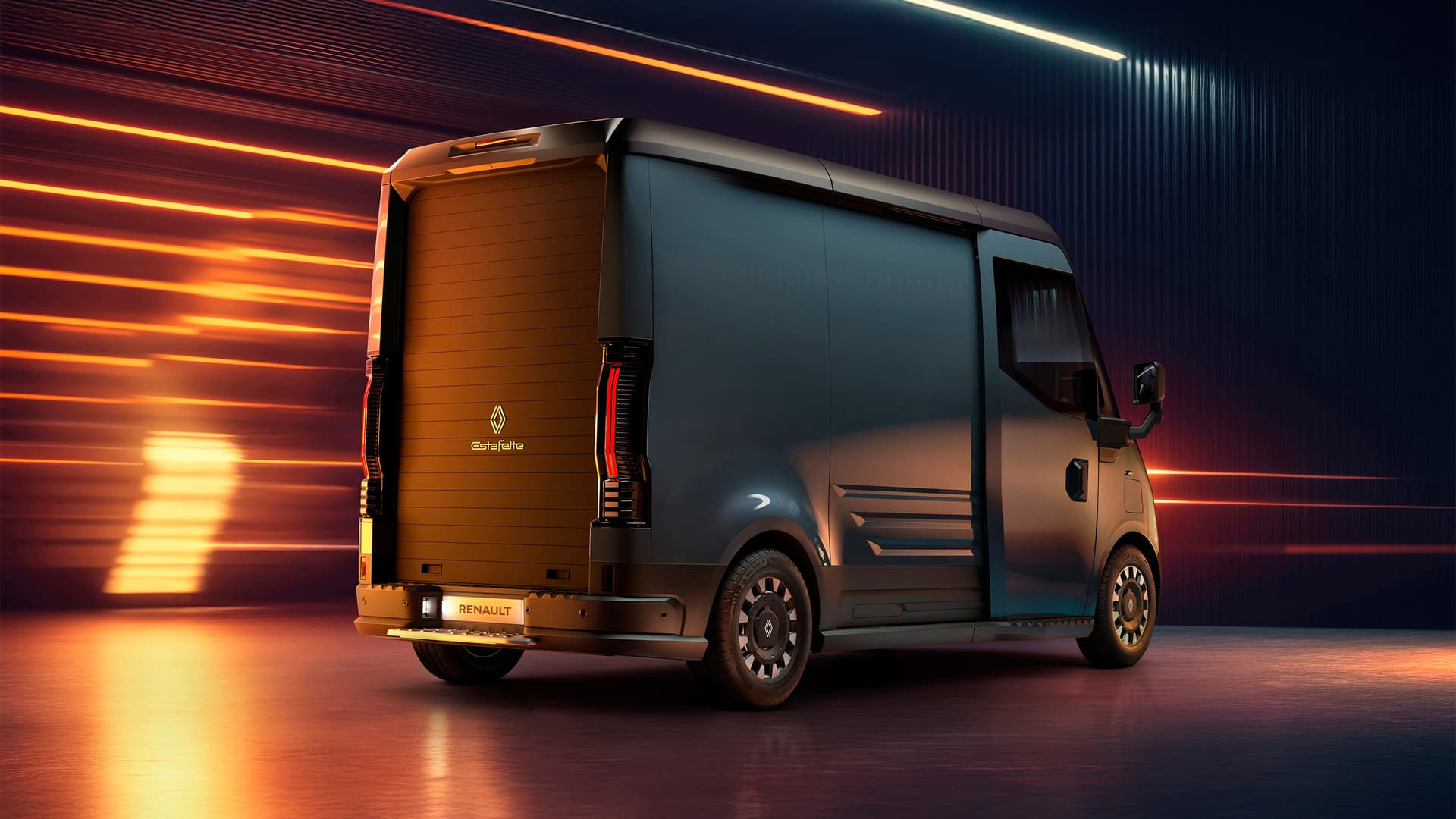 Renault Estafette, født på 60-tallet, gjør en comeback med en elektrisk drivlinje og revolusjonerer nok engang varebil-verdenen i en urban og høyteknologisk drakt. Bilens størrelse gjør den lett å manøvrere i bymiljøet. Ved et enkelt knappetrykke åpnes den innvendige døren til varerommet automatisk og nødblinken aktiveres.