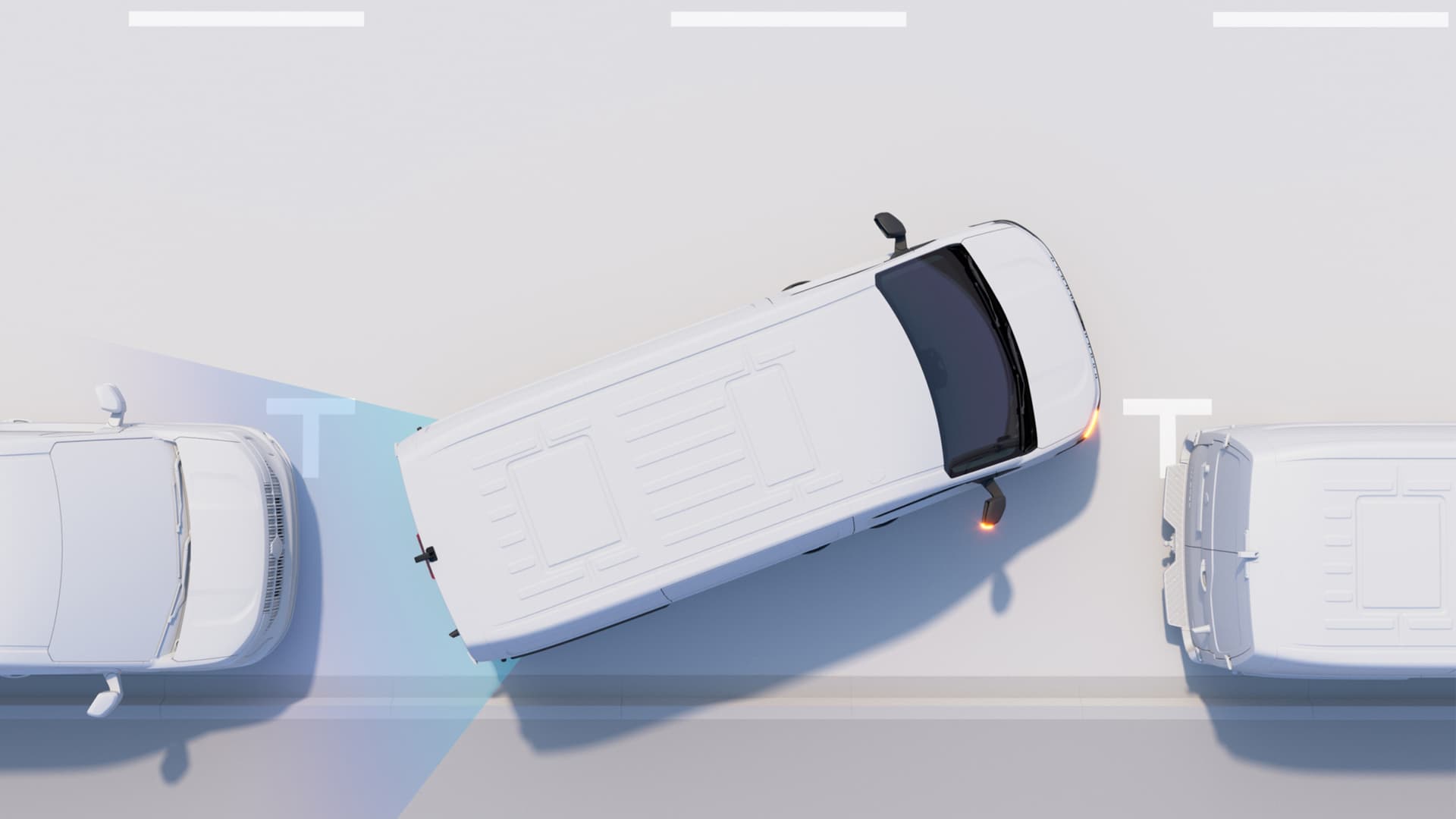 Om fører har en syklist i blindsonen vil et lyssignal i sidespeilet varsle føreren. Om varebilen oppdager en syklist på passasjersiden, vil en sensor aktivere lyd- og lyssignal.