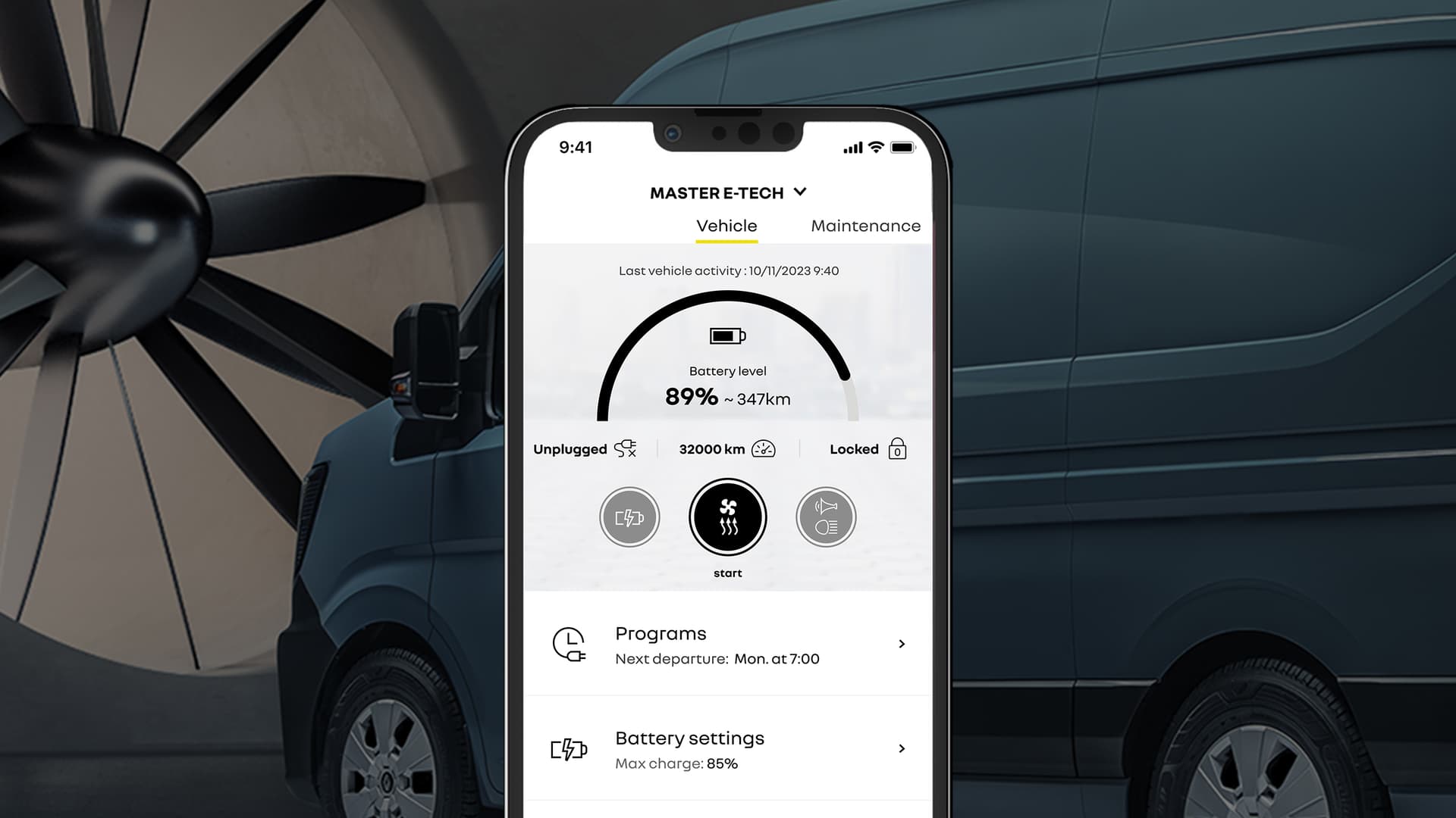 Smarttelefonen din er alltid koblet til varebilen via My Renault-appen med mulighet for å fjernstyre den. Slik som for eksempel: kjørelengde, ladestasjoner i nærheten, reiseplanlegging og mye mer. My Renault-appen utvikles kontinuerlig for å gjøre livet ditt enklere